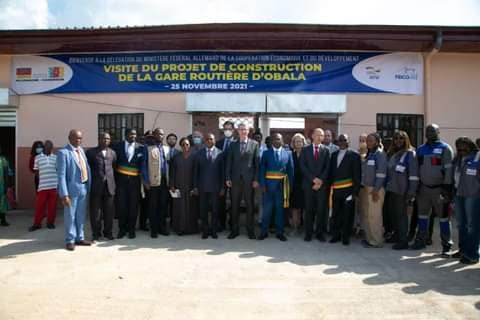 Ce jeudi 25 novembre 2021, la Commune D’Obala LV a reçu une délégation du Ministère Fédéral Allemand de la Coopération Économique et du Développement (BMZ) conduite notamment par Dr Simon KOPPERS, Directeur de la Division Afrique Centrale de la BMZ pour une visite du chantier de construction d’une gare routière moderne dans la Ville D’Obala.